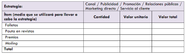 Diseñar las estrategias de comunicación, requerirá establecer detalles de las acciones concretas que se ejecutarán, cuándo, quiénes serán los responsables y el presupuesto para cada acción o campaña a desarrollar. Se debe tener en cuenta que varios elementos de comunicación se podrían utilizar en campañas promocionales e incluso afectar a otras estrategias. El presupuesto inicial de marketing, se debe llevar entre los costos e inversiones pre operativas y recuperar en forma de costos fijos mensualmente.